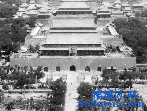 民国时期的天安门挂着蒋介石巨幅像。