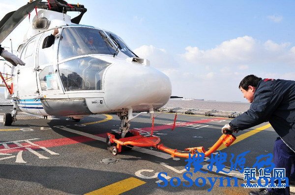• 机组人员将“中国海监B-7115”直升机固定在飞行甲板上